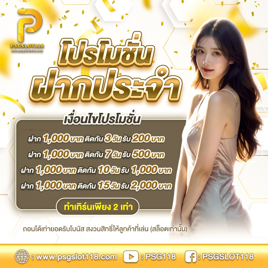 **PSGSLOT118** มักมีโปรโมชั่นหรือกิจกรรมพิเศษ เช่น เงินคืน โบนัสฝากแรกเข้า หรือแจ็กพอตเพิ่มเติม การใช้โปรโมชั่นช่วยเพิ่มทุนและโอกาสชนะโดยไม่ต้องลงเงินเพิ่มมาก